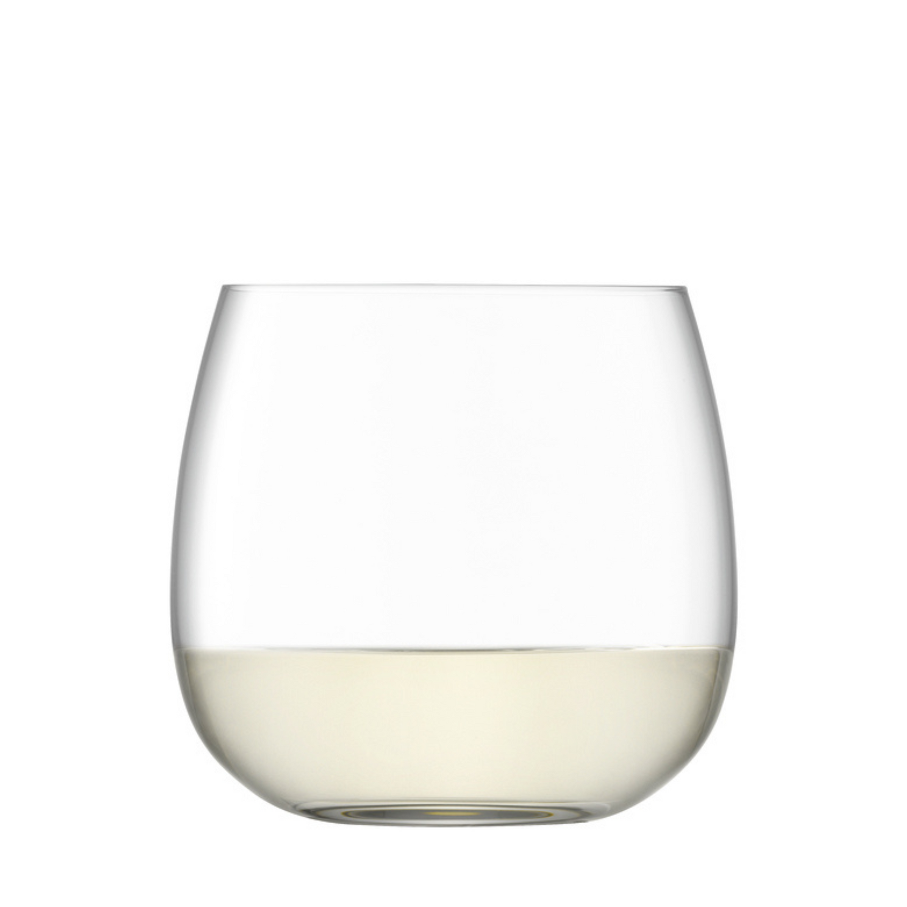 Set of four short stemless glasses with fine walls and a curved shape. A versatile shape designed for wine, cocktails and water. Made from lead-free crystalline glass for clarity and strength.