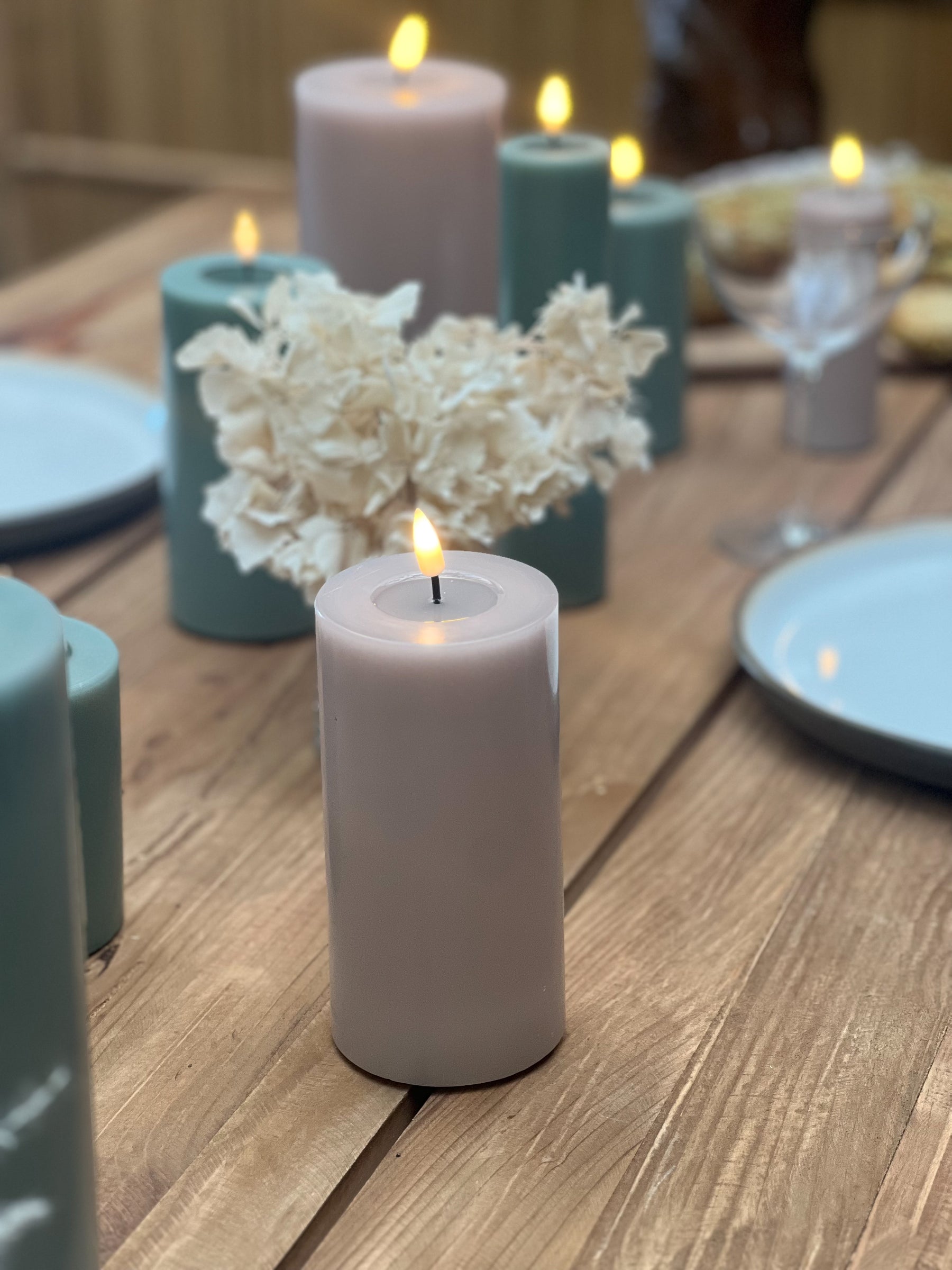 Featuring advanced 3D Real Flame™️ technology, these pillar candles provide a mesmerising flicker flame effect for a cozy atmosphere indoors.