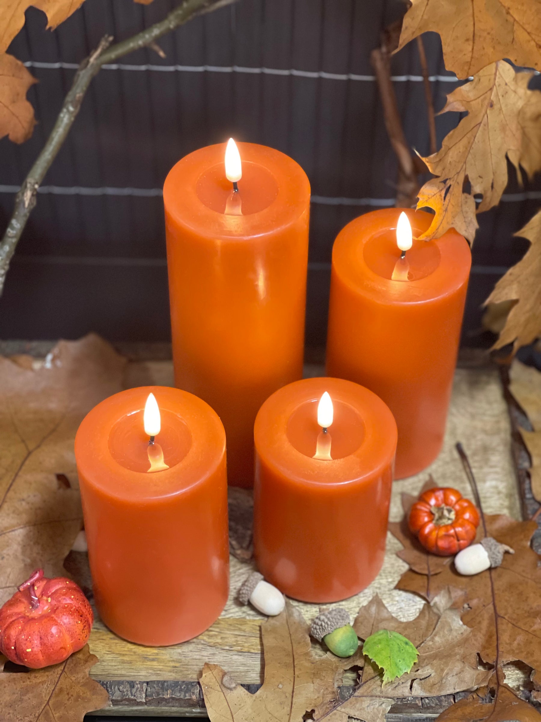 Featuring advanced 3D Real Flame™️ technology, these pillar candles provide a mesmerising flicker flame effect for a cozy atmosphere indoors.