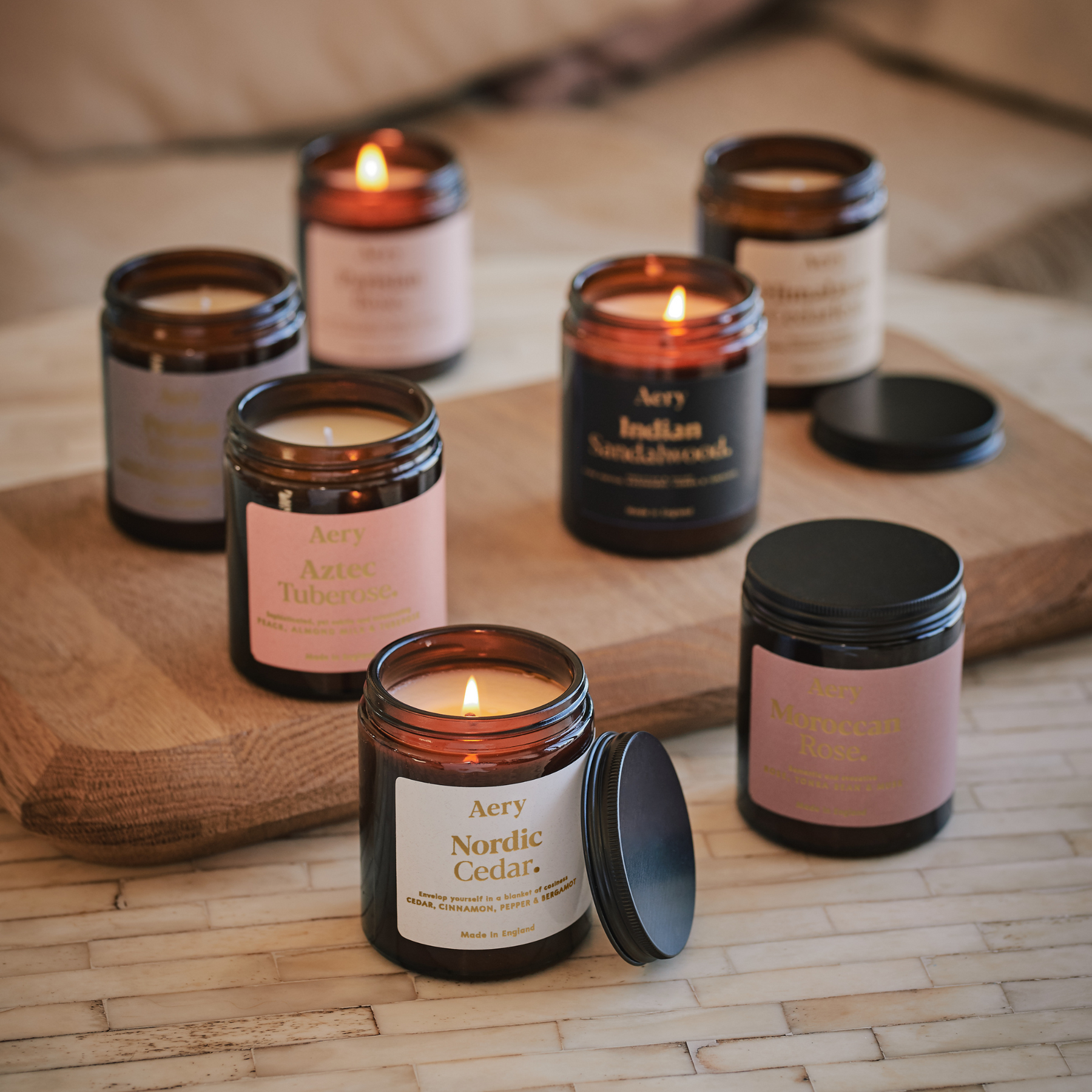 Cedar essential oil promotes better sleep meaning this candle is meant for master bedrooms or relaxing nights on the sofa.