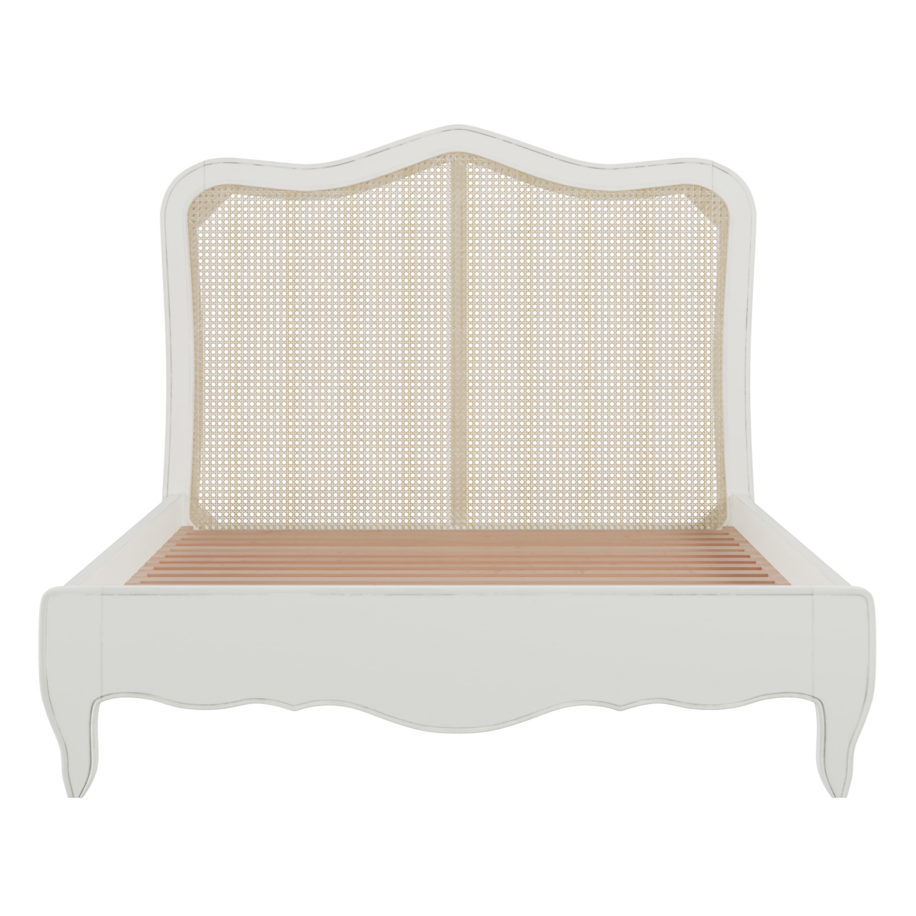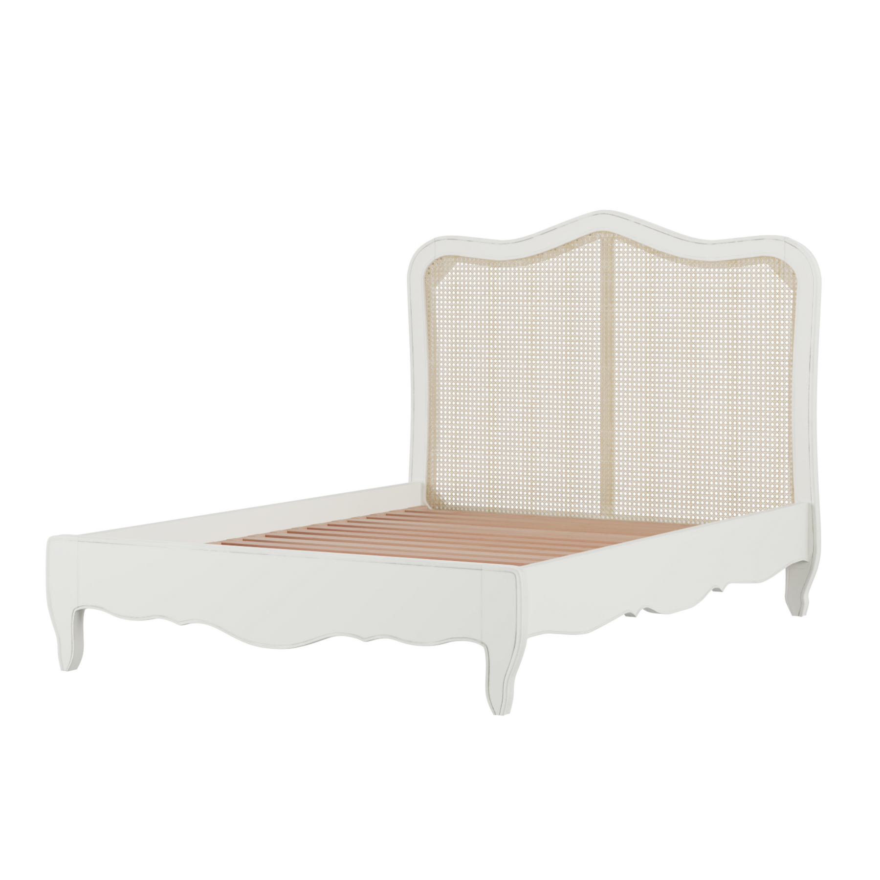 Finishing the room is the Laura Ashley Montpellier Bed Frame, beautifully complimenting the rest of the range. This stately bed features shaped legs, profiled side rails and an elegantly framed rattan head board. In addition it uses solid slats for a supportive and ventilated mattress base. The solid frame is offered in an ivory colour and has a durable yet low maintenance finish applied. Â