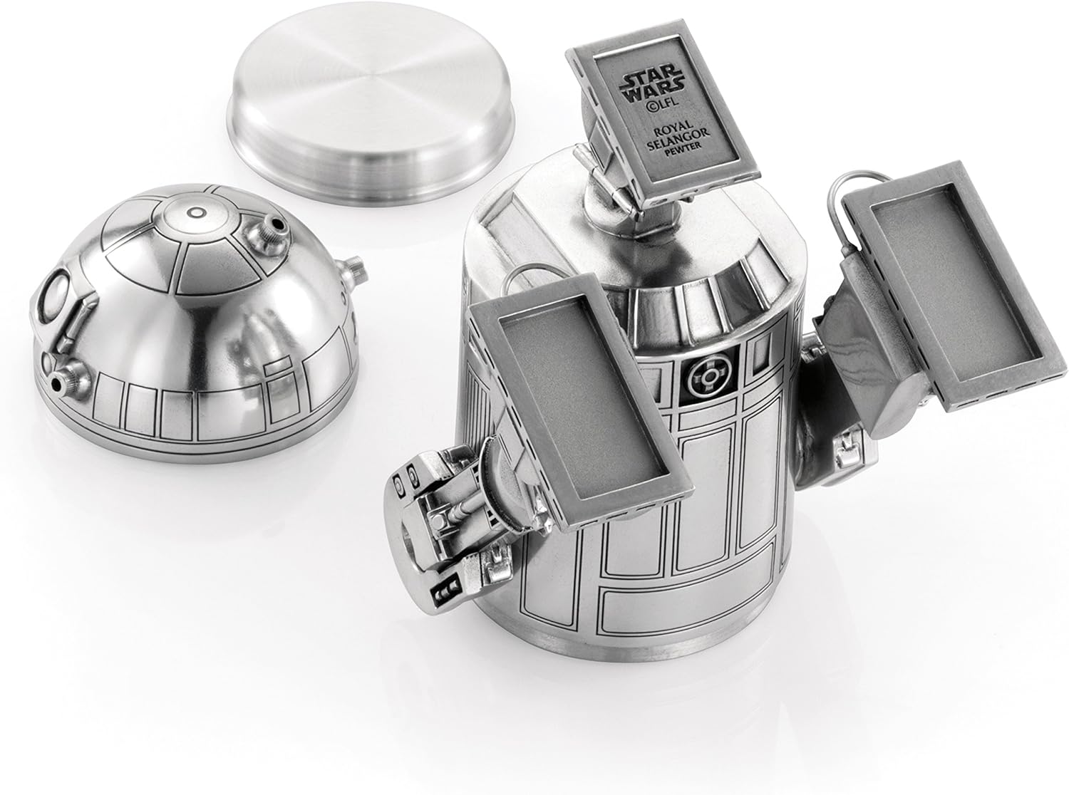Approximately 1/9 scale and beautifully detailed, lifting R2-D2’s domed head reveals a canister for confidential Death Star schematics.