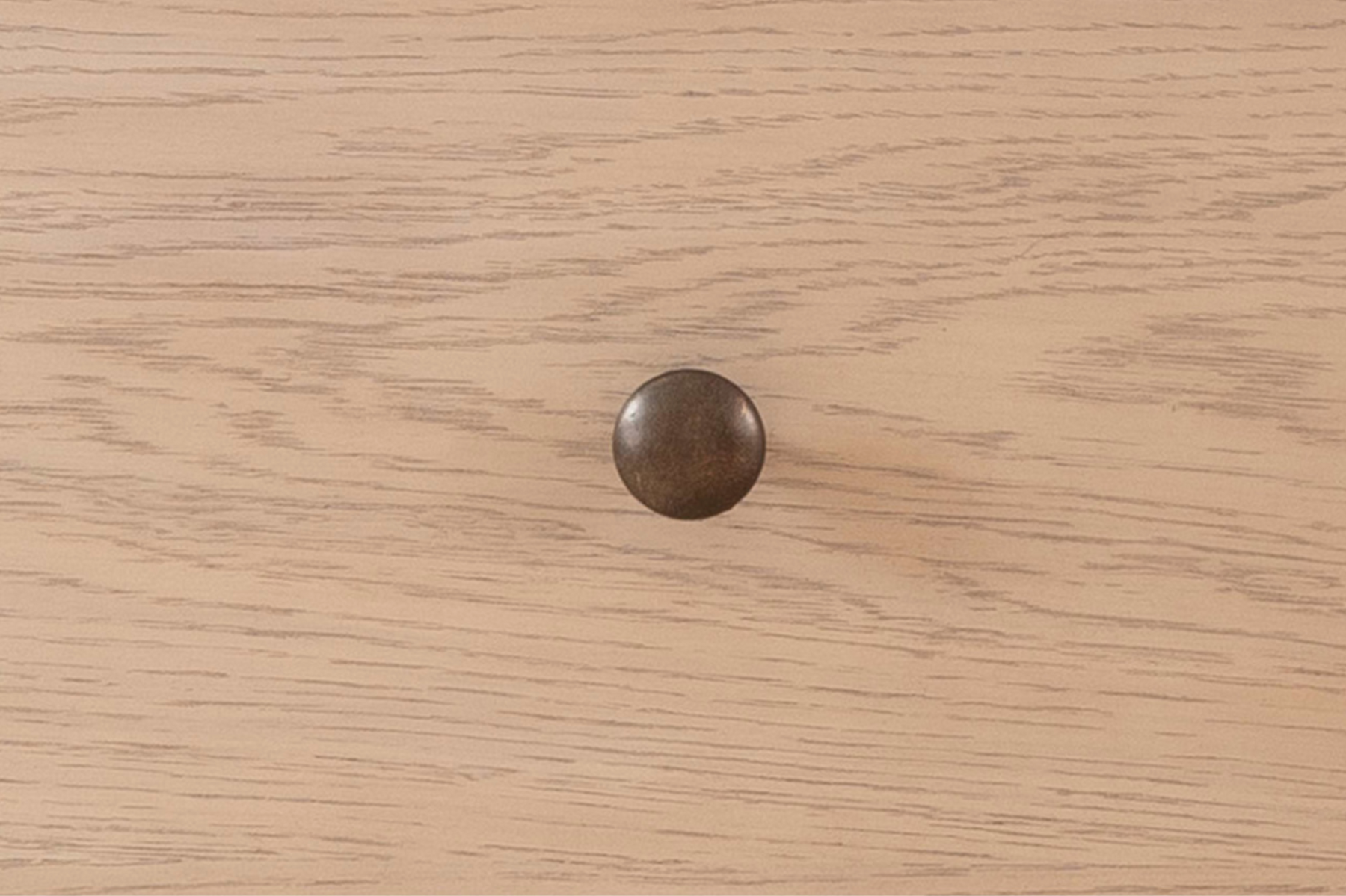 Crafted from carefully selected oak solids and veneers, the Toulon range features a hand-finished white hue lacquer that enhances the natural grain character of the wood, lending a sense of timeless beauty to the collection. Each piece is adorned with authentically aged brass handles, adding a touch of vintage allure to the aspirational and curated look of the range.