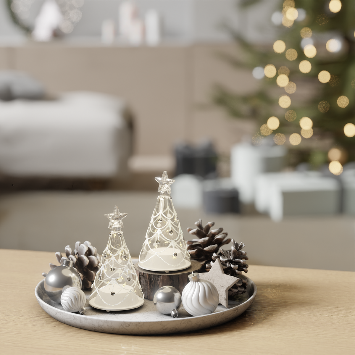 Set of 2 Light-Up Ornaments with Warm Micro LED Lights