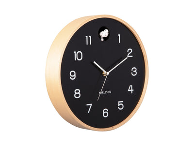 Cuckoo clock! The Natural Cuckoo wall clock by Karlsson just brings the outdoor feeling straight to your interior. Thanks to the wooden design and natural tones of the clock face, the clock has a very natural look. Designer Amando Breeveld designed the clock in such a way that it can find a nice spot in any interior, from kitchen to study. The Cuckoo Clock from Karlsson is available in four different colors, such as jungle green and mouse grey.