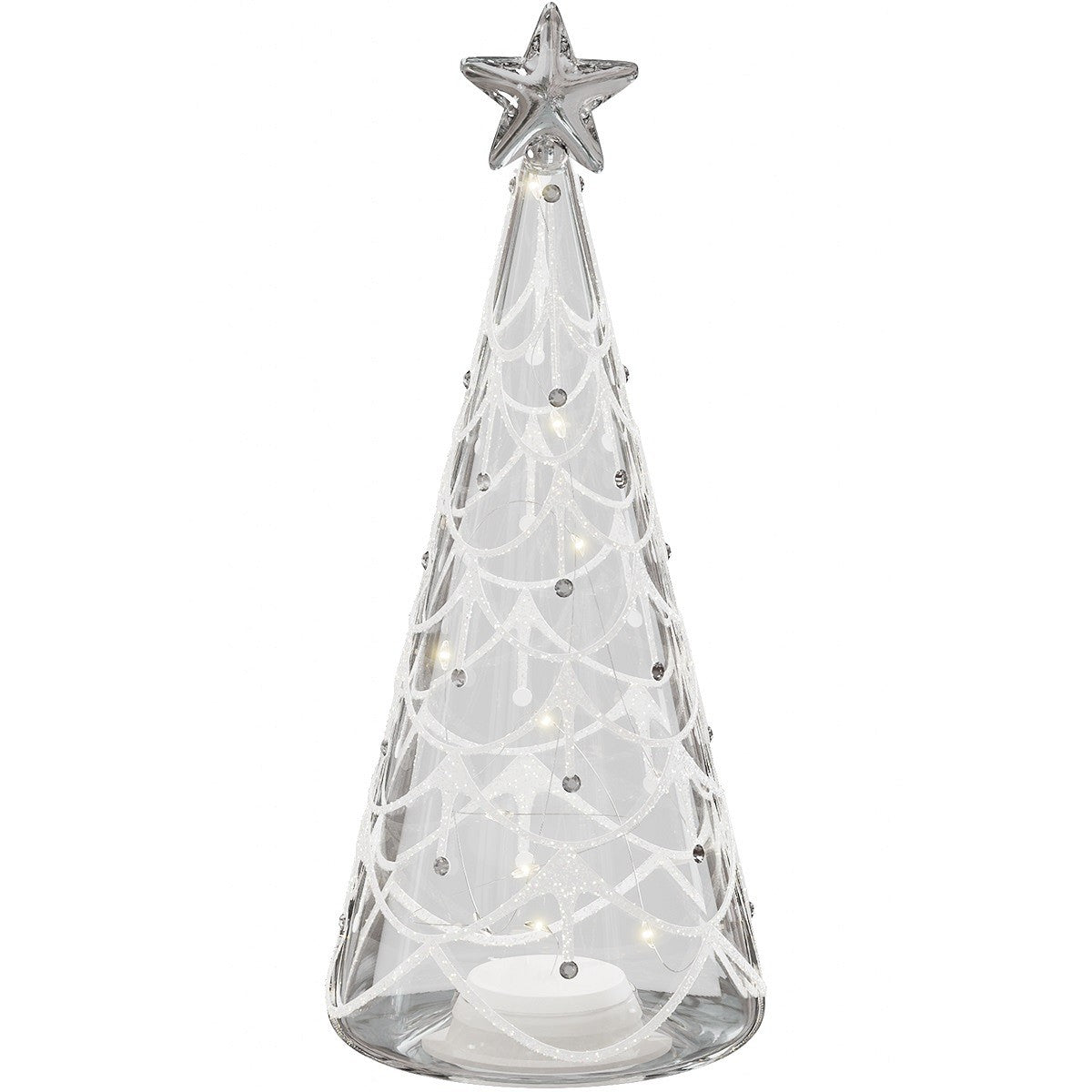 Glass Christmas Tree Light-Up Ornament with Warm Micro LED Lights