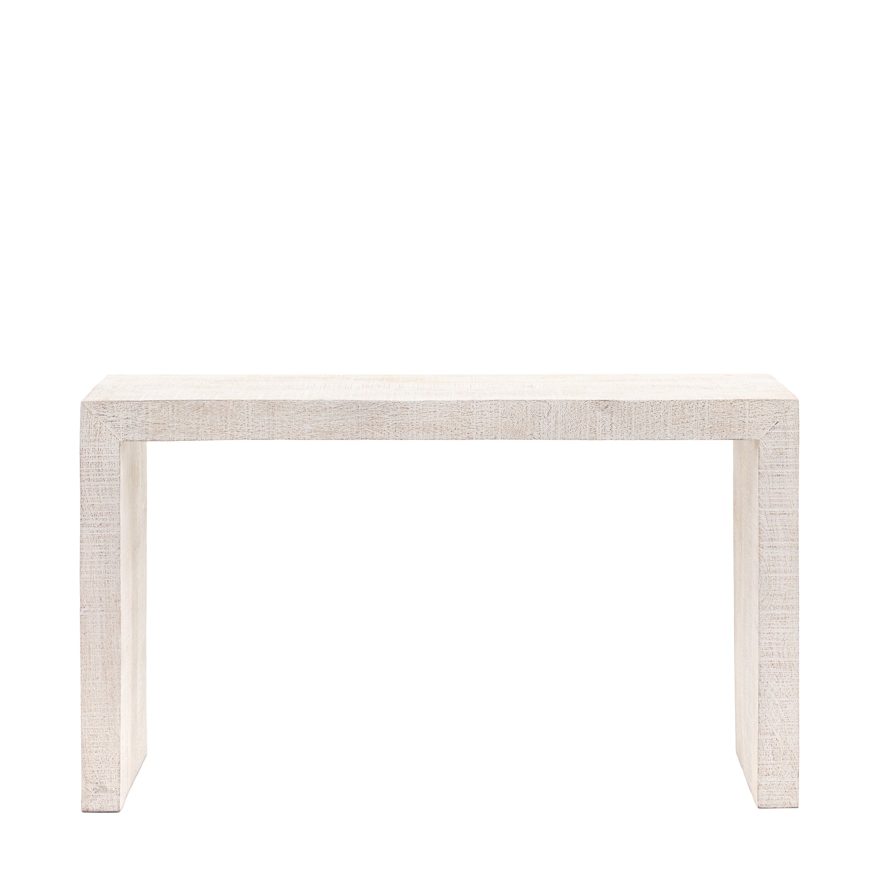 Perfect for use as a console table or slim desk, the Iowa Console Table adds relaxed rustic charm to any room. Crafted from rough-hewn mango wood, its simple, chunky silhouette highlights natural texture and grain, while the soft whitewashed finish brings a lighter, homely feel. Ideal for hallways, living spaces or home offices, with coordinating pieces available to complete the look.