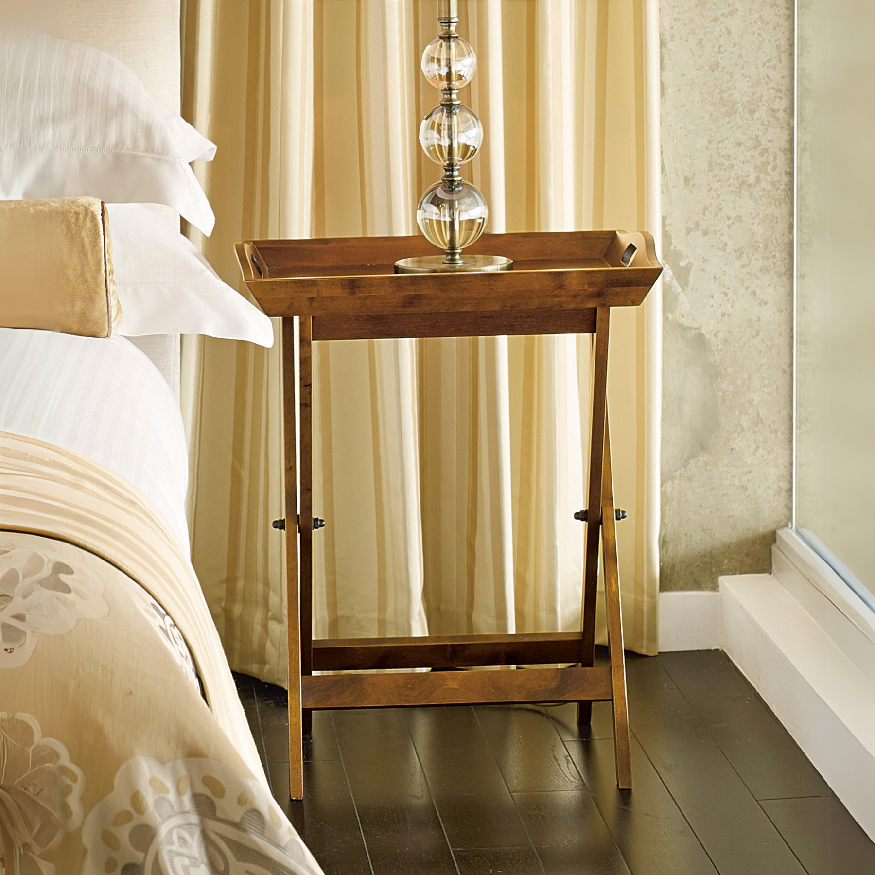 Crafted from predominantly solid birch but with some birch veneer modern materials the Laura Ashley Garrat Butler's Tray features a removable tray with handles which sits atop a folding stand. Elegant, useful and space saving means this traditionally inspired design cleverly combines the look of yesteryear with the needs of modern living.