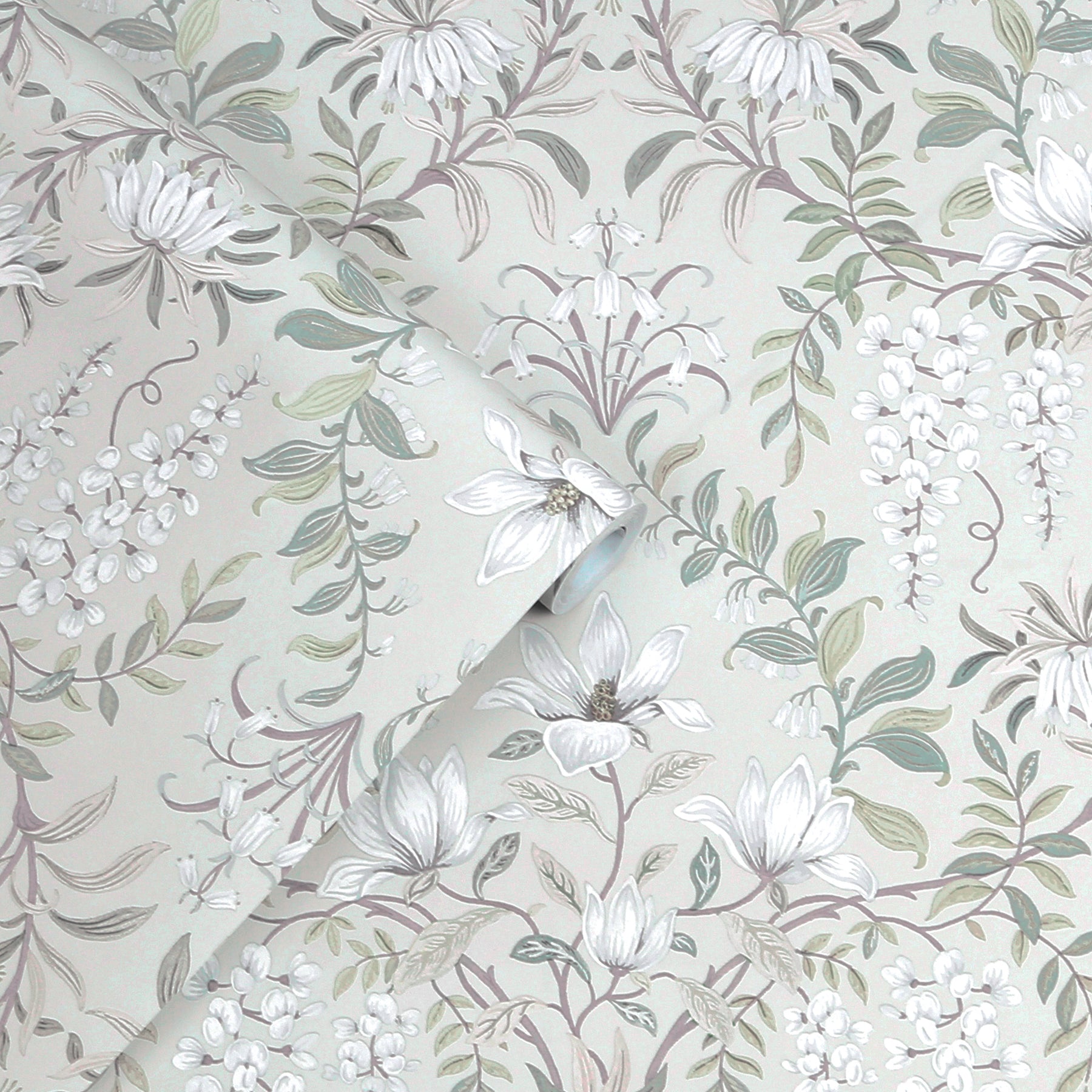 This vintage Laura Ashley Parterre wallpaper has been given an up-to-date makeover to create a delightfully light botanical that looks sublime in any space. Easy-living sage green tones bring a fresh, contemporary feel to this classic design, featuring subtle sage tints against a soft white background interlaced with delicate blossoms and leaves. The overall effect is light and whimsical, effortlessly enhancing both modern and traditional interiors with its calming, nature-inspired charm.