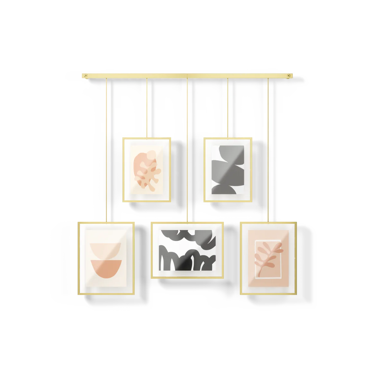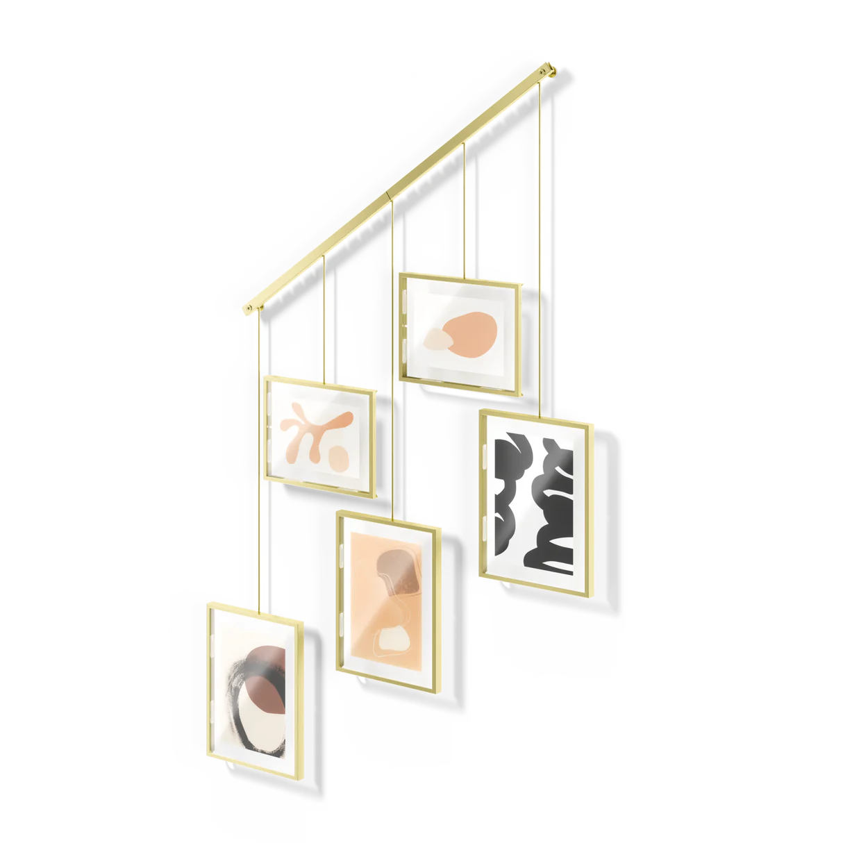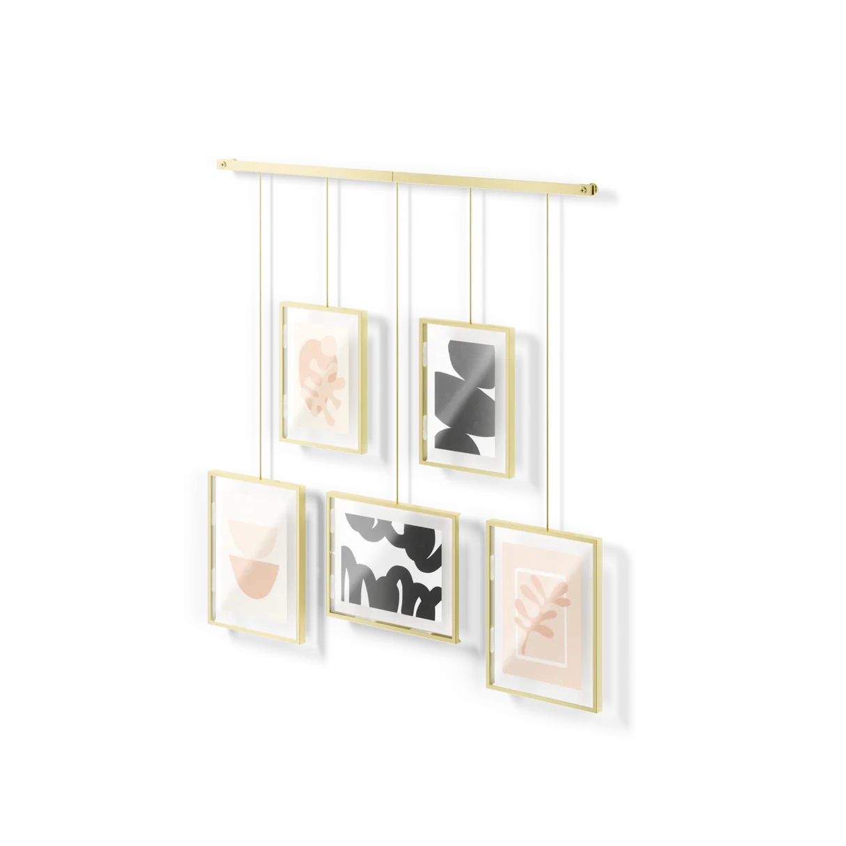 Upgrade your wall decor with Exhibit Photo Display. This sleek, wall-mounted brushed metal ledge is equipped with clips and brackets to securely hold five gallery-style picture frames of various sizes. Say goodbye to unsightly wall damage – Exhibit is designed to minimize any marks left behind. But that's not all – the brackets with the frames are suspended from the ledge, giving you the freedom to create your own unique layouts. Hang it straight or angled, Exhibit is perfect for stairways, adding a modern touch to any space. Place Exhibit in your living room, bedroom, entryway, office, or studio to elevate your home's style. Showcase your favorite photos and artwork while giving the room a fresh, contemporary update. You can easily customize the layout to fit your preferences. Move the picture frames around, rotate them to landscape or portrait orientation – the choice is yours. With two 4x6 frames and three 5x7 frames, you can display all your cherished memories, illustrations, and more. Designed to complement any decor style, Exhibit is not just a wall decor piece – it's a statement. Change out your images effortlessly to refresh your room whenever you feel like it. Upgrade your space with Exhibit Photo Display today.
