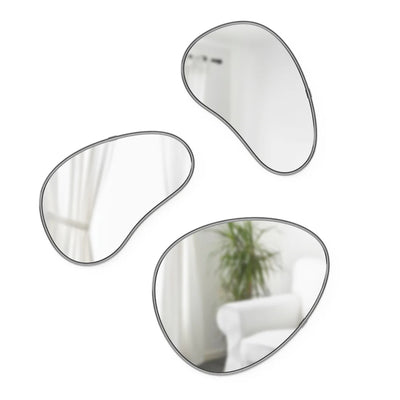 This unique, set of 3 organic-shaped mirrors are a new addition to our Hubba Family. Easy to install with included adhesive strips, hang Pebble in a way that best fits your space. This playful set of mirrors make a perfect addition to a variety of spaces in the home - from entryway to bathrooms, playrooms and more.