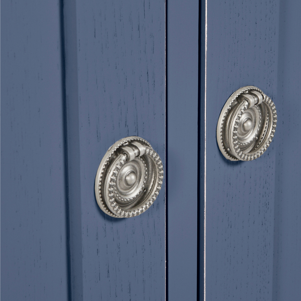 The imposing Laura Ashley Henshaw 2 Door 2 Drawer Sideboard would add sophistication to any décor. It features two good-sized drawers and two cupboard sections each fitted with an adjustable shelf for convenience. It is crafted from solid wood with veneered elements and modern materials and is hand painted. A clear lacquered finish provides for low maintenance and completing the appearance is subtle distressing to the edges giving the unit an aged effect. Only the legs need to be attached to begin enjoying this piece; full assembly is not required.