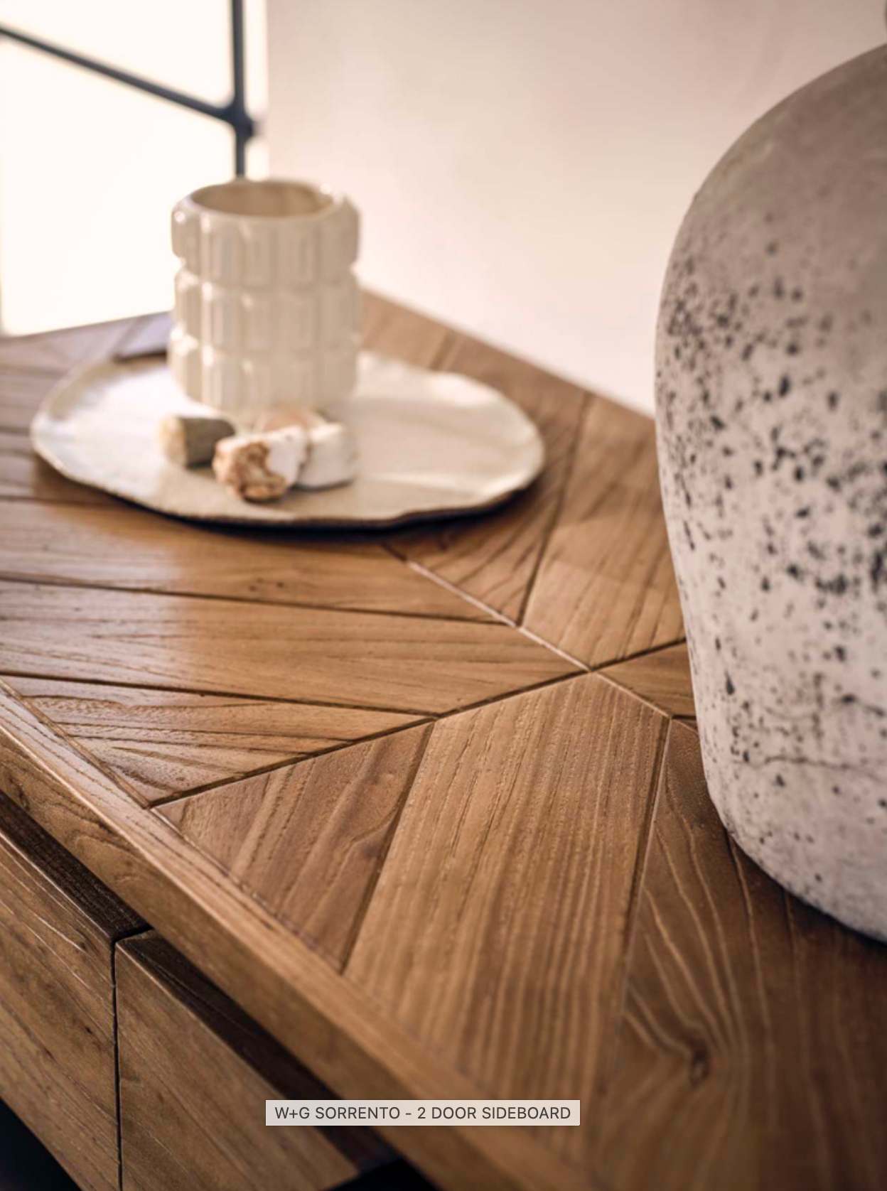 Refined yet full of character, the Sorrento 2 Door Sideboard brings distinctive texture and warmth to contemporary interiors.