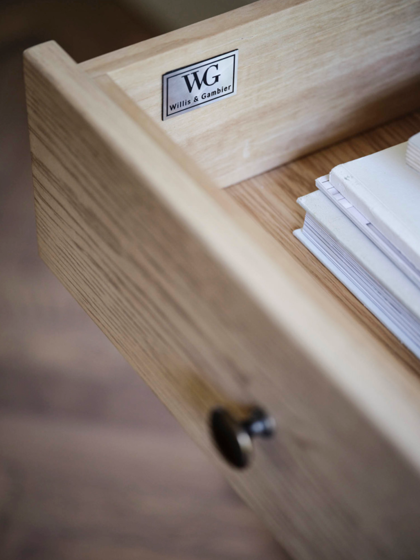 Crafted from carefully selected oak solids and veneers, the Toulon range features a hand-finished white hue lacquer that enhances the natural grain character of the wood, lending a sense of timeless beauty to the collection. Each piece is adorned with authentically aged brass handles, adding a touch of vintage allure to the aspirational and curated look of the range.